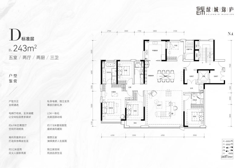 建筑面积约243㎡ 物业类型住宅 装修毛坯,精装 朝向南