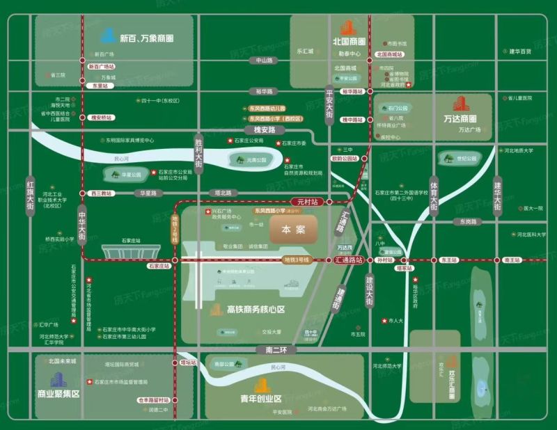 动态周边有万象城/新百、北国未来城、裕华万达、西美四大商圈,以及在建的约27万㎡万达茂和约2万㎡社区商业...