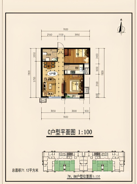 建筑面积约71.12㎡ 物业类型 装修毛坯 朝向南