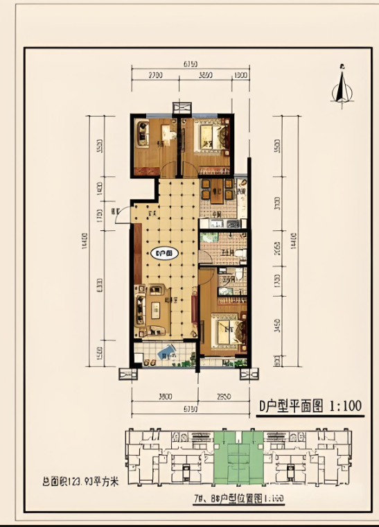 建筑面积约123.93㎡ 物业类型 装修毛坯 朝向南