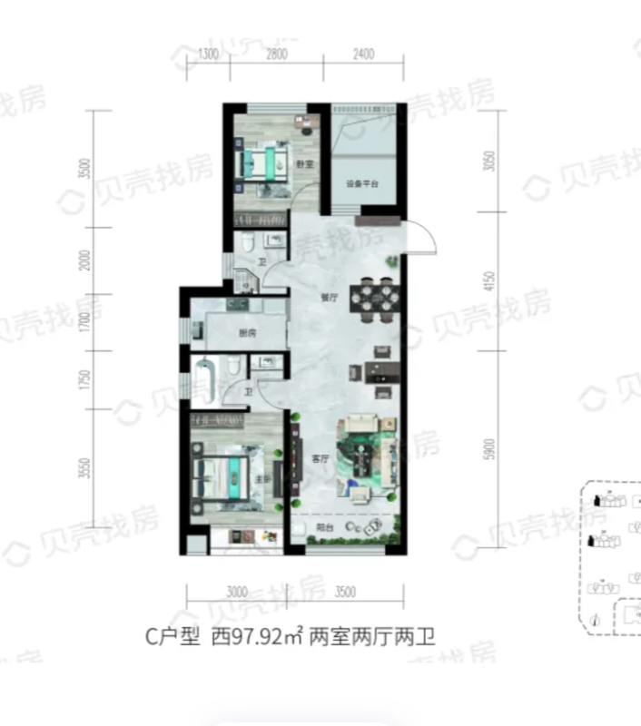 建筑面积约97.92㎡ 物业类型 装修毛坯 朝向南